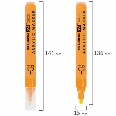 Маркеры акриловые для рисования и хобби, 20 ярких цветов, линия 1-2 мм, BRAUBERG ART CLASSIC, 152524