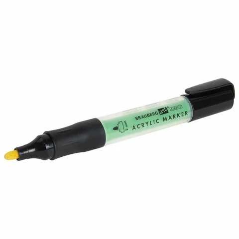 Надежный помповый механизм подачи краски предотвращает вытекание и разбрызгивание в процессе использования, а также преждевременное высыхание. Износостойкий фетровый наконечник устойчив к повреждениям и обеспечивает экономный расход чернил. Изделие не перезаправляется. Плотно закрывается колпачком, что предотвращает высыхание наконечника и чернил.