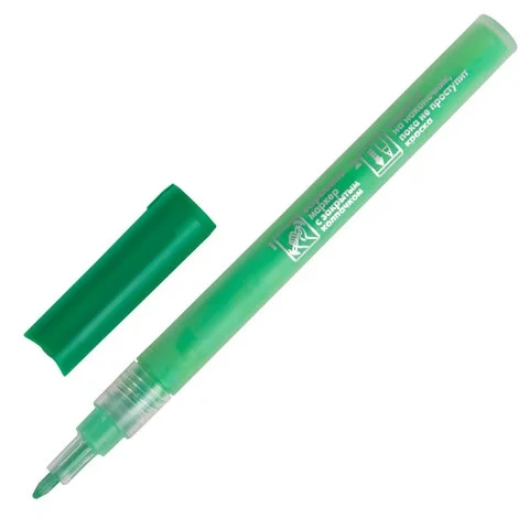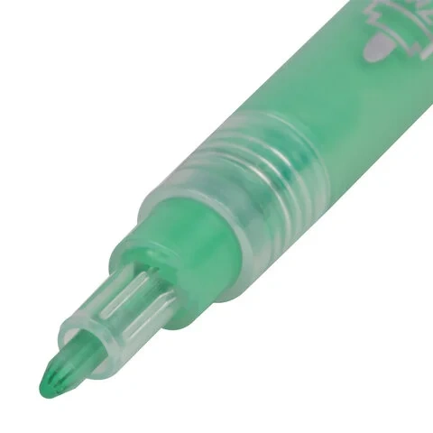 12 цветов в наборе: золотой, серебряный, черный, белый, зеленый, оранжевый, дубовый, алый, желтый, синий, фиолетовый, розовый. Круглый пластиковый корпус, внутри которого находится металлический цилиндр для взбалтывания краски, имеет диаметр 12 мм. Пигментированная акриловая краска на водной основе практически не имеет запаха, после высыхания обладает повышенной светостойкостью и водостойкостью. Краска обладает превосходной укрывистостью. Благодаря водной основе краска быстро сохнет и не размазывается. Надежный помповый механизм подачи краски предотвращает вытекание и разбрызгивание в процессе использования, а также преждевременное высыхание. С помощью тонкого прочного наконечника, выполненного из полиамида с шириной линии письма 0,7 мм, можно легко наносить тонкие линии. Цвет корпуса и колпачка соответствует цвету краски.