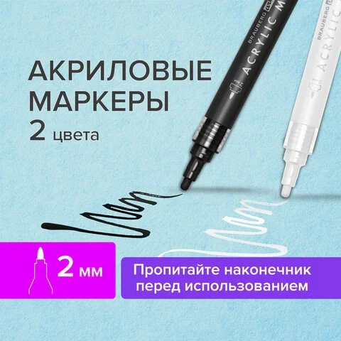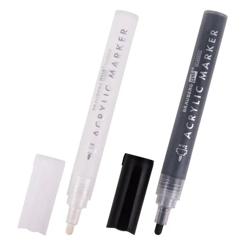 Маркеры акриловые для рисования и хобби BRAUBERG ART CLASSIC, НАБОР 2 цв., ЧЁРНЫЙ/БЕЛЫЙ, 2 мм, 15214