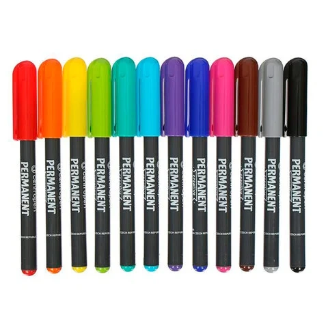 Набор перманентных маркеров для декорирования. Подходят для письма на большинстве поверхностей: лакированная бумага, резина, кожа, пластмасса, металл, стекло, камень, пленка…Чернила на спиртовой основе устойчивы к воде и стиранию. Пулевидный наконечник, толщина линии 2 мм.