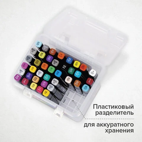 Маркеры для скетчинга двусторонние BRAUBERG ART DEBUT 'BLACK', НАБОР 48 шт., пластиковый кейс, 15213