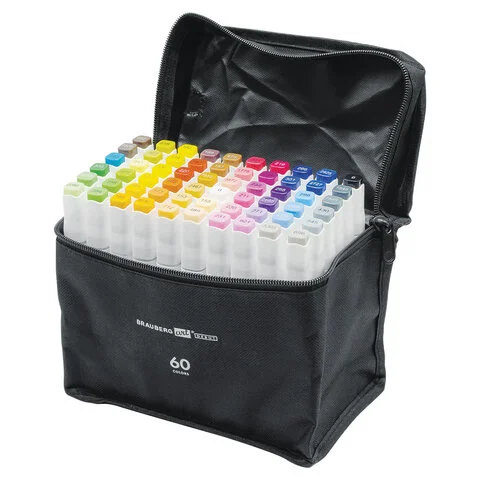 Маркеры для скетчинга двусторонние BRAUBERG ART DEBUT 'WHITE', НАБОР 60 шт., чехол, 152143