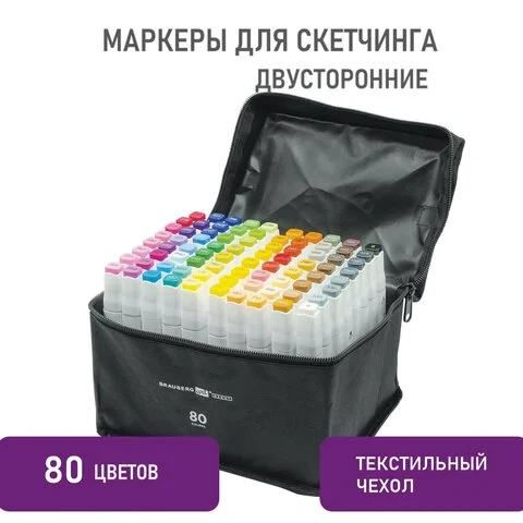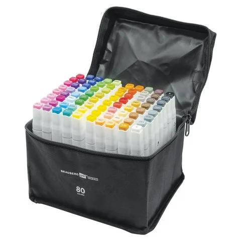 Маркеры для скетчинга двусторонние BRAUBERG ART DEBUT 'WHITE', НАБОР 80 шт., чехол, 152144