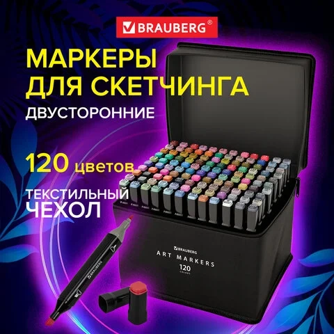 Маркеры для скетчинга двусторонние, НАБОР 120 шт., текстильный чехол, BRAUBERG, 152234