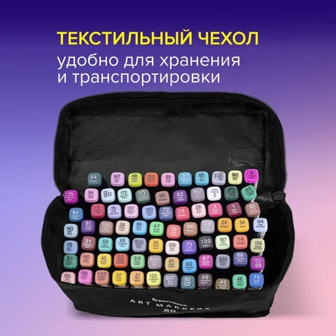 Маркеры для скетчинга двусторонние, НАБОР 80 шт., текстильный чехол, BRAUBERG, 152233