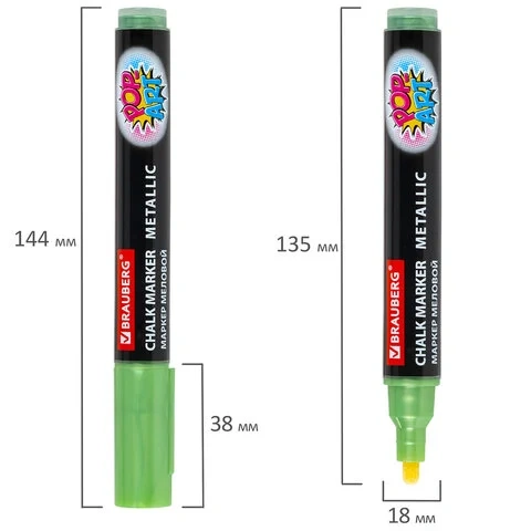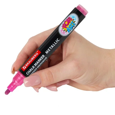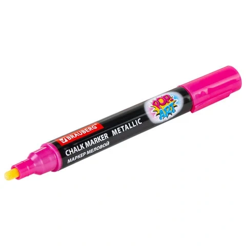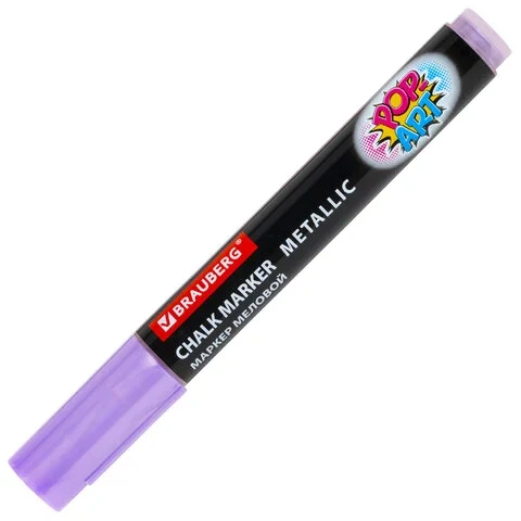 Маркер меловой Brauberg Pop-Art 6 цветов, металлик, 5мм, скошенный наконечник, влагостираемые