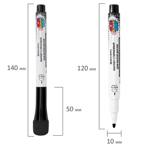 Отзывы о «Маркеры на магните со стирателем для белой доски и планера, 3 шт., черные, BRAUBERG POP-ART, 1-2 мм,»