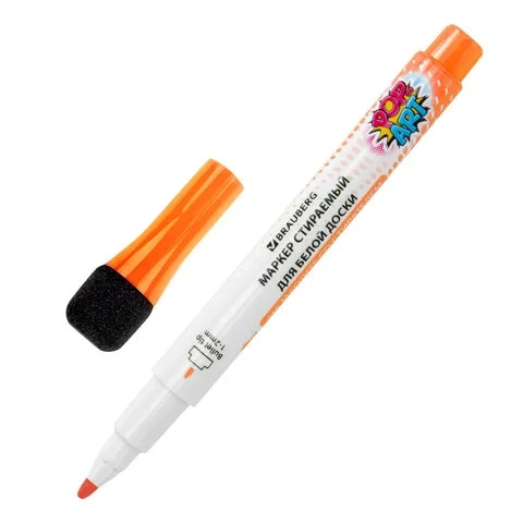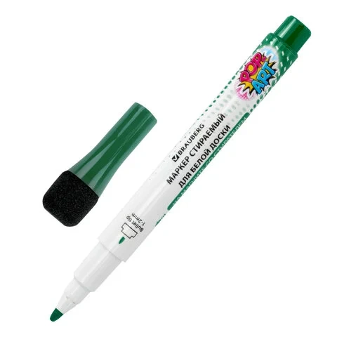 Колпачок оснащен магнитом для удобного крепления на доске, планере или другом магнитном рабочем месте. В колпачке имеется губка-стиратель для удаления записей.