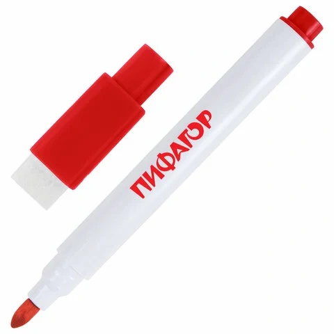 Маркеры стираемые 2 мм для белой доски и планера со стирателем НАБОР 12 ЦВЕТОВ, ПИФАГОР, 152565