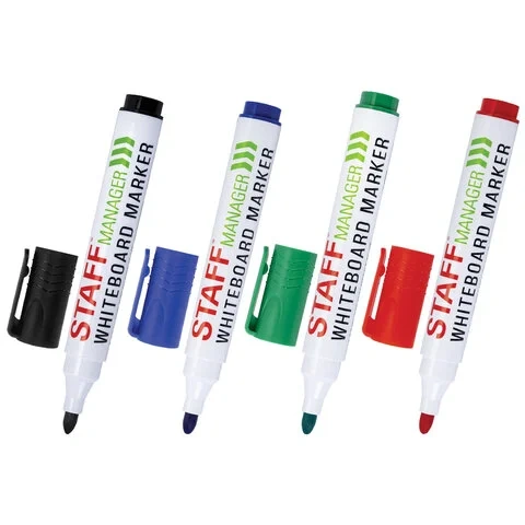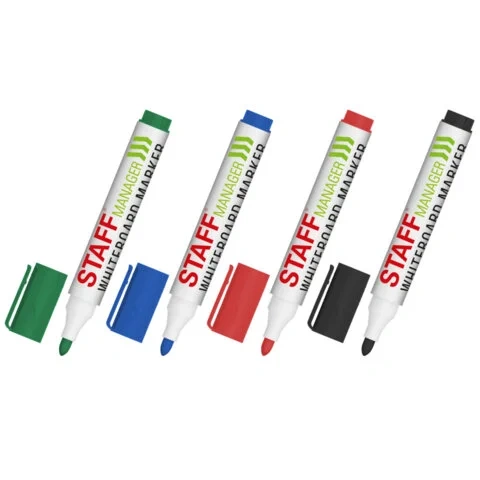 Маркеры стираемые для белой доски НАБОР 4 ЦВЕТА, STAFF 'MANAGER' WBM-300, 3 мм, с клипом, 152637