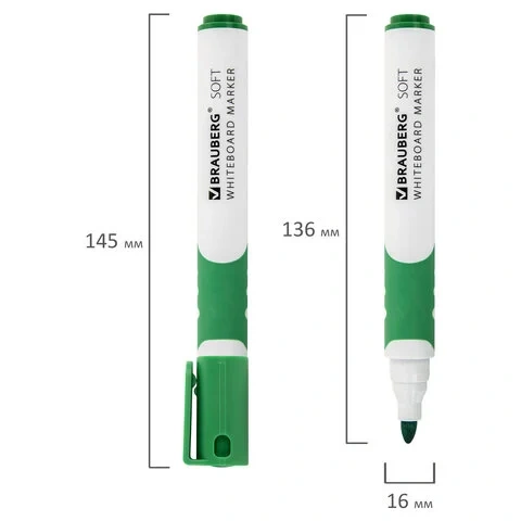 8 цветов в наборе: черный, красный, синий, зеленый, розовый, фиолетовый, оранжевый, светло-голубой. Маркеры обладают круглым пластиковым корпусом диаметром 16 мм и оснащены прорезиненной зоной захвата для более удобного использования. Наконечник круглой формы обеспечивает толщину линии письма 5 мм, что позволяет писать крупным шрифтом, который будет хорошо виден. Основа чернил - спиртовая. Чернила быстро высыхают и не оставляют разводов, легко стираются сухой губкой. Изделие не перезаправляется. Цвет колпачка и прорезиненной вставки соответствует цвету чернил.