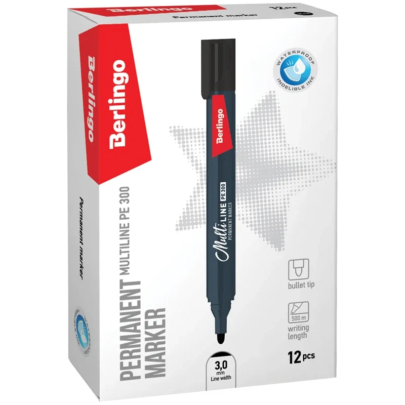 Маркер перманентный Berlingo MultiLine PE304 черный, 3мм, пулевидный наконечник