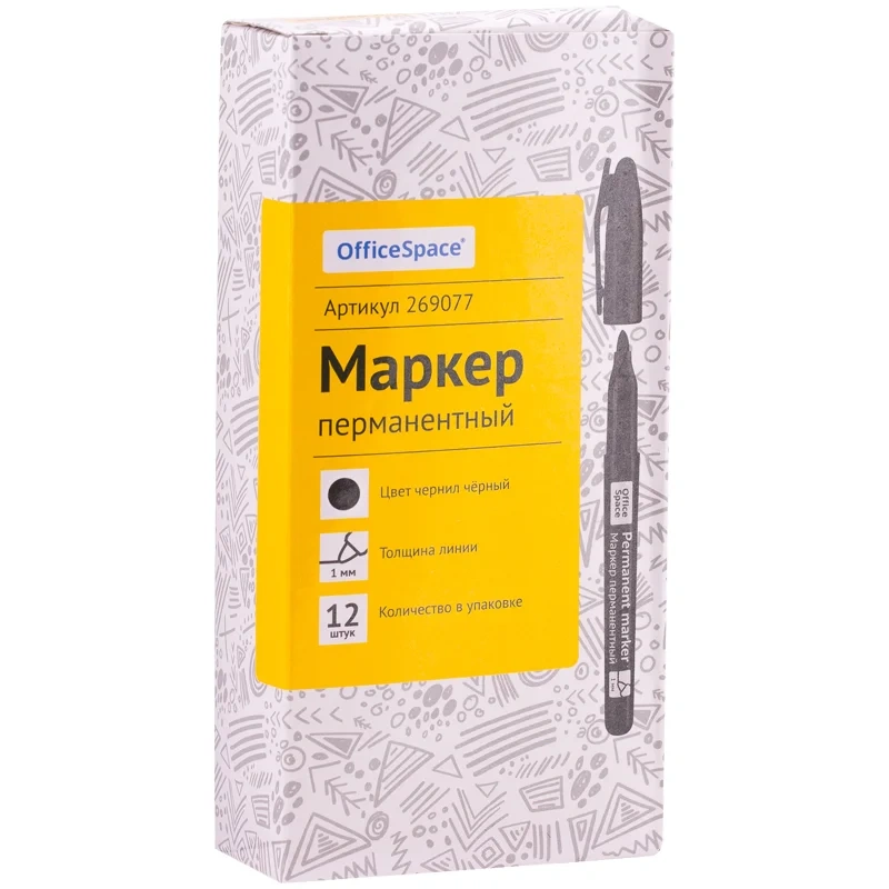 Маркер перманентный Officespace черный, 1мм, пулевидный наконечник