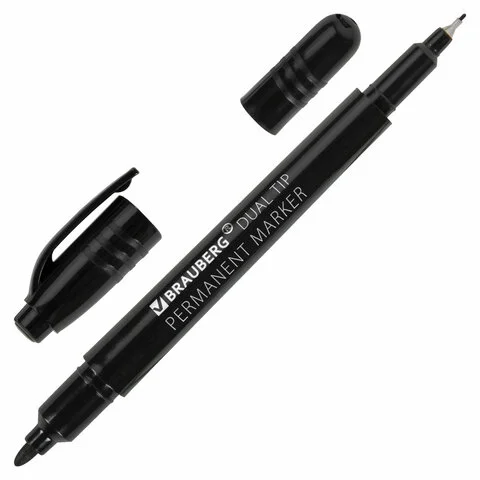 Маркер перманентный Brauberg Duo черный, наконечники 0,7/1 мм, двусторонний