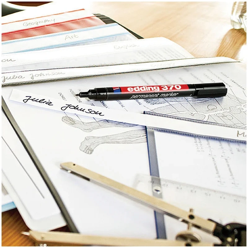 Маркер перманентный Edding 370 черный, 1мм, круглый наконечник, универсальный, заправляемый
