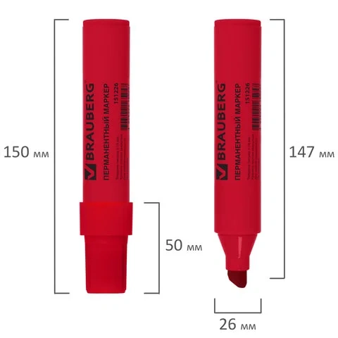 Маркер перманентный Brauberg красный, 3-10мм, скошенный наконечник