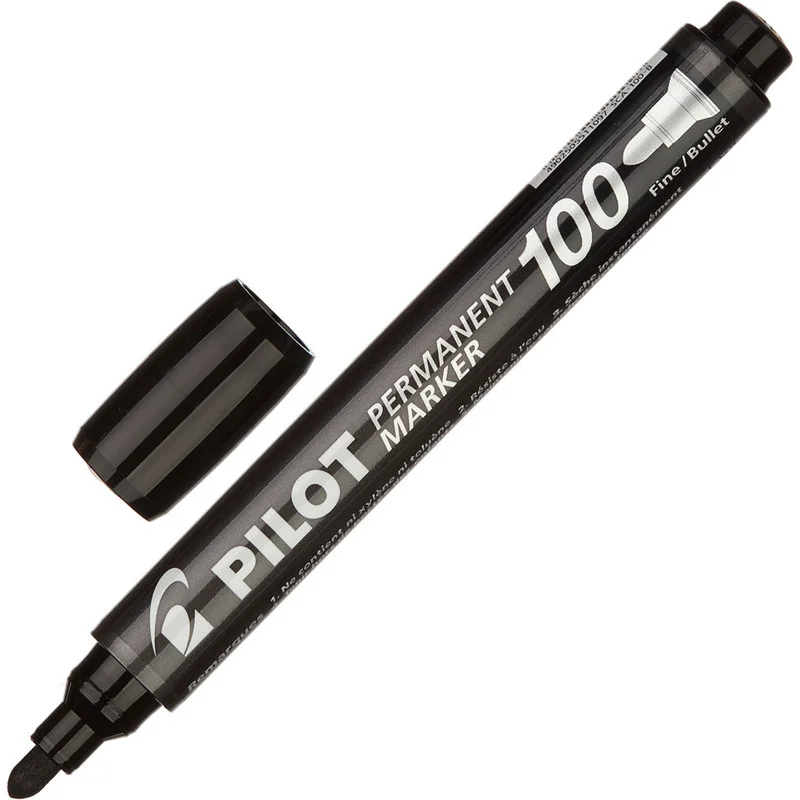 Маркер перманентный Pilot 100 черный, 1мм, пулевидный наконечник