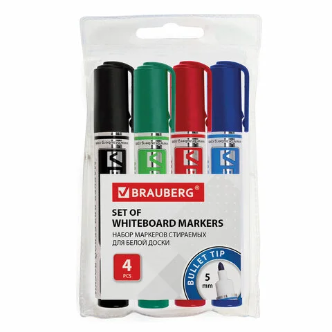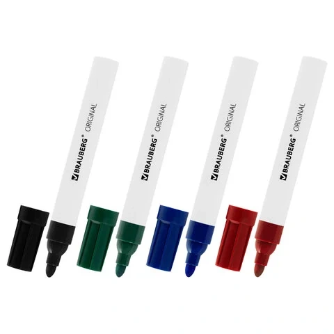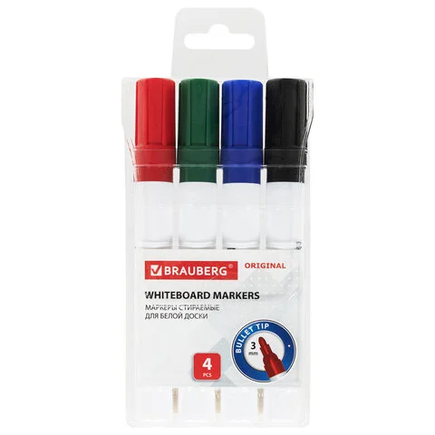 Маркеры стираемые для белой доски НАБОР 4 ЦВЕТА, BRAUBERG 'ORIGINAL', 3 мм, 152120