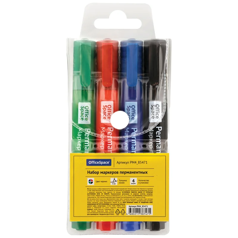 Набор маркеров перманентных OfficeSpace '8004А' 04цв., пулевидный, 3мм, чехол с европодвесом