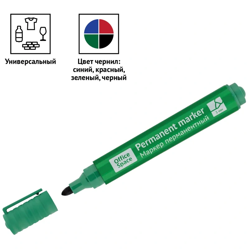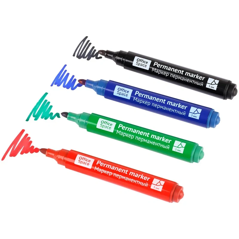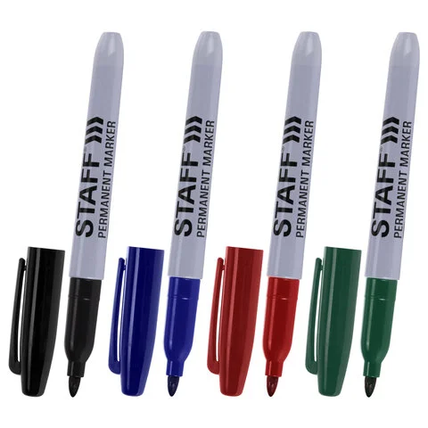 Маркер перманентный Staff набор 4 цвета, 2.5мм, круглый наконечник, нестираемый