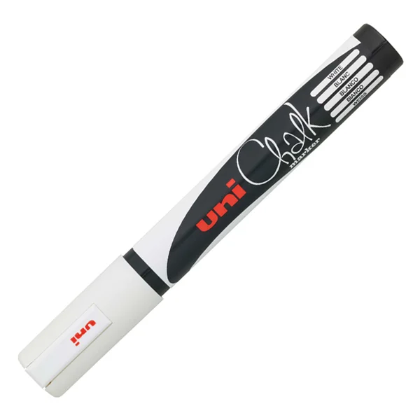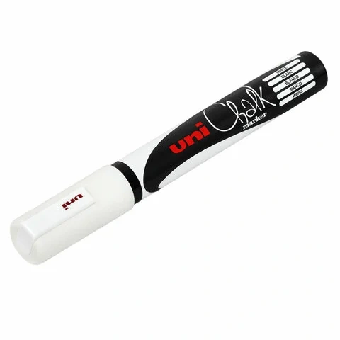 Маркер меловой Uni Chalk PWE-5M белый, 1.8-2.5мм, круглый наконечник, для окон и стекла
