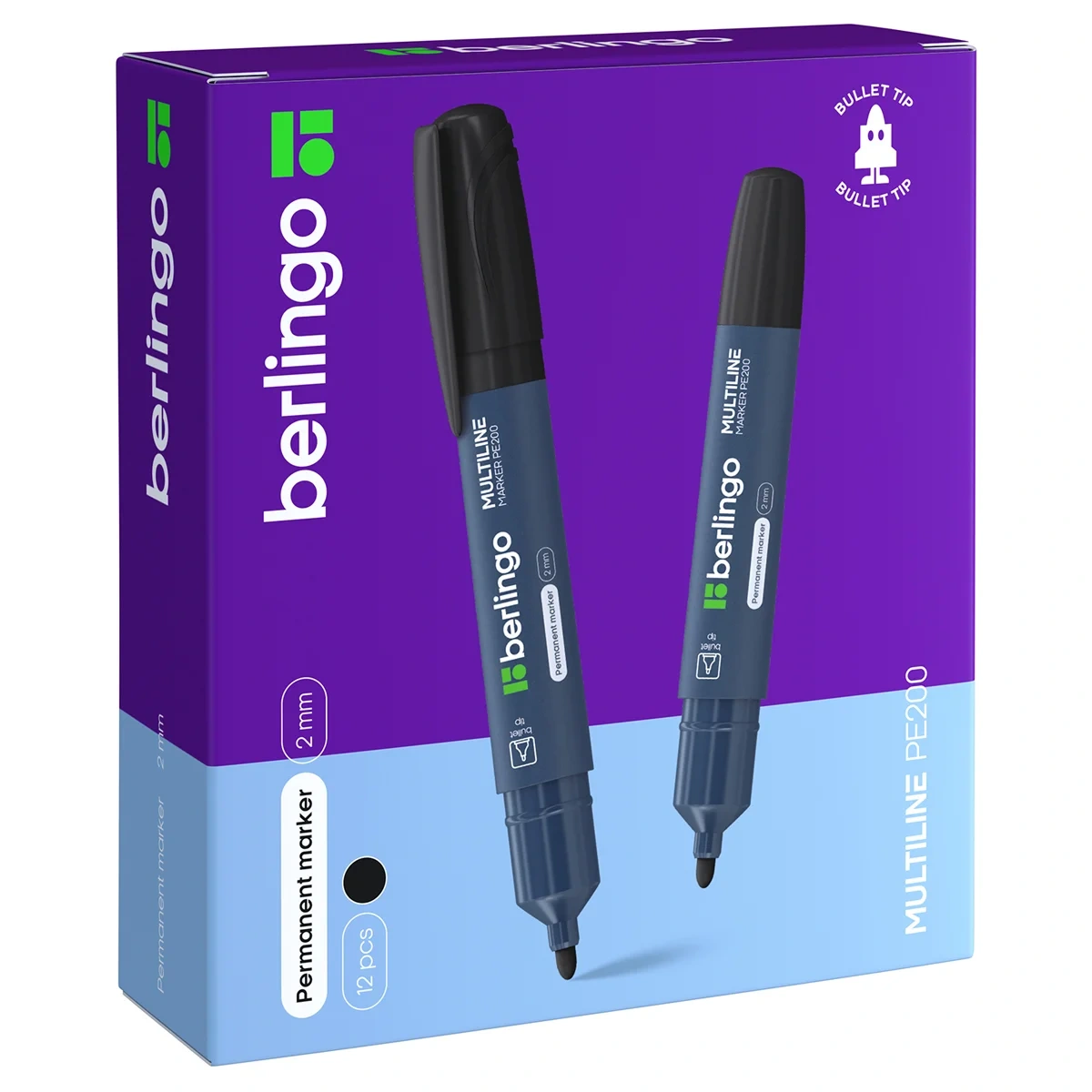 Маркер перманентный Berlingo черный, 2мм, пулевидный наконечник