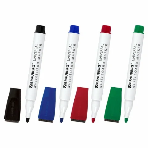 Маркер для досок Brauberg Universal 4 цвета, 3мм, круглый наконечник