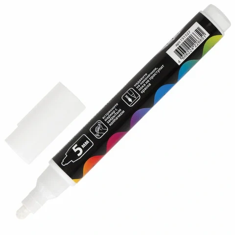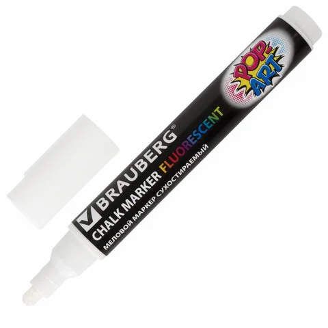 Маркер меловой BRAUBERG 'POP-ART', сухостираемый, для гладких поверхностей, 5 мм, БЕЛЫЙ, 151527