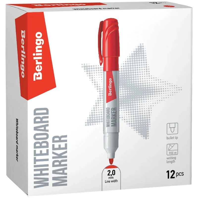Маркер для досок Berlingo красный, 2мм, пулевидный наконечник