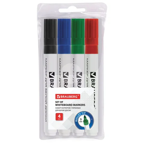 Маркер для досок Brauberg набор 4 цвета, 5мм, круглый наконечник