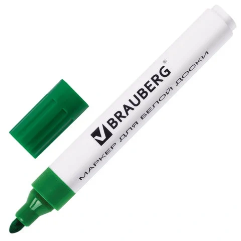 Маркер для флипчарта Brauberg зеленый, 2.5мм, круглый наконечник, непропитывающий
