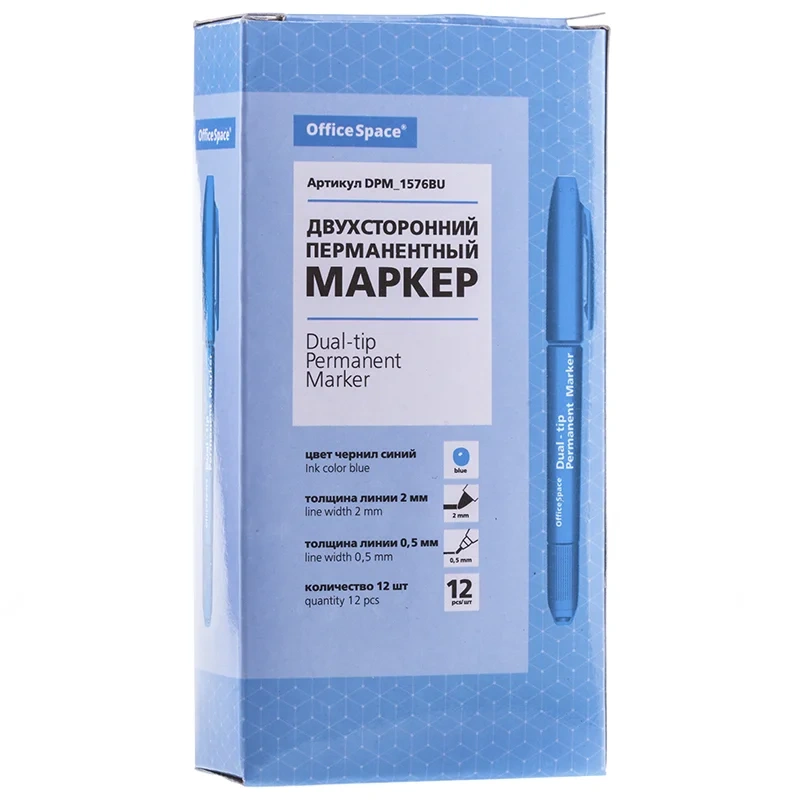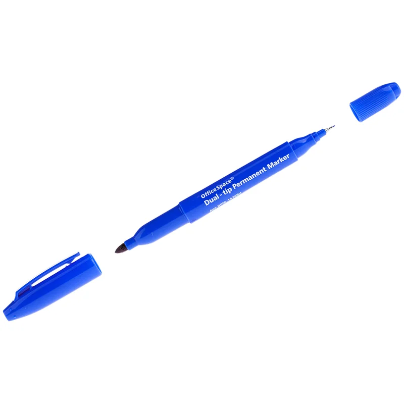 Маркер перманентный Officespace синий, 0.8-2мм, пулевидный наконечник, двухсторонний