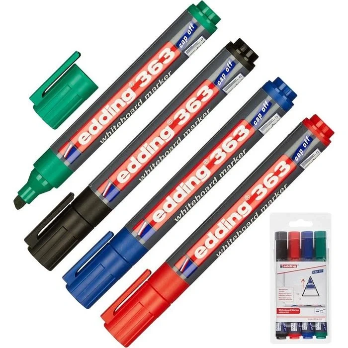 Маркер для досок Edding 363 набор 4 цвета, 1-5мм, скошенный наконечник, заправляемый