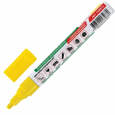 Маркер-краска Brauberg желтый, 2-4мм, пулевидный наконечник, нитро-основа
