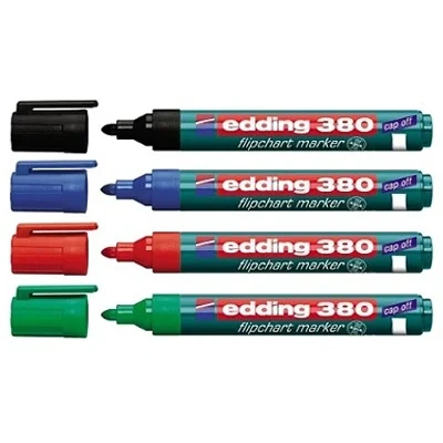 Маркер для флипчарта Edding 380 набор 4 цвета, 1.5-3мм, круглый наконечник, cap off