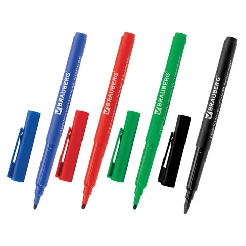 Набор перманентных маркеров Brauberg ClassicLine набор 4 цвета, 1мм, тонкий наконечник