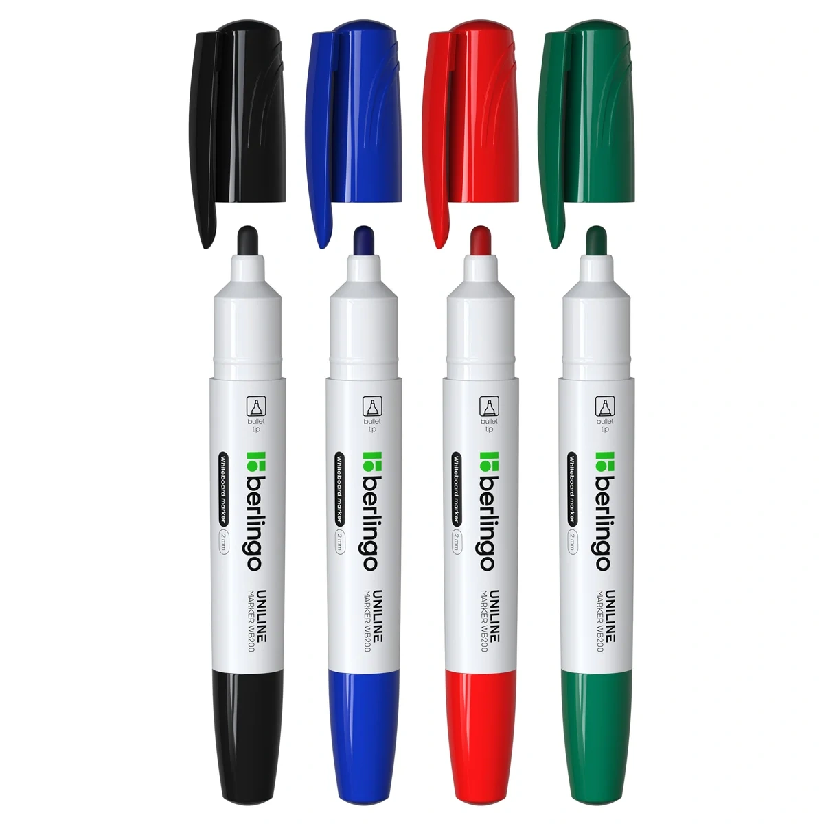 Маркер для досок Berlingo набор 4 цвета, 2мм, пулевидный наконечник