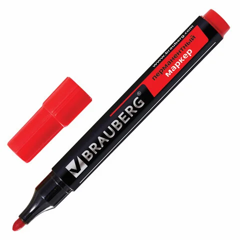 Маркер перманентный Brauberg Contract красный, 3мм, круглый наконечник