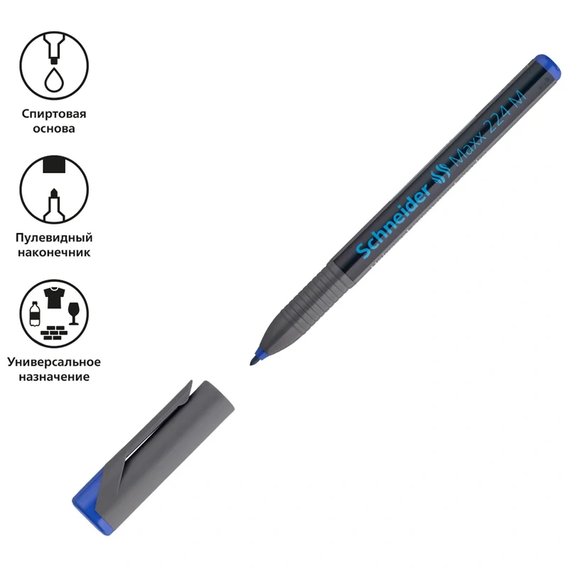 Маркер перманентный Schneider Maxx 224 M синий, 1мм, пулевидный наконечник