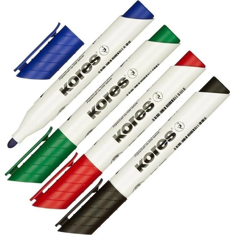 Маркер для досок Kores набор 4 цвета, 2-5мм, круглый наконечник, cap off, 20843