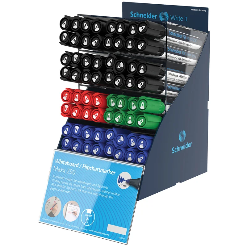 Маркер для белых досок и флипчартов Schneider 'Maxx 290' ассорти, пулевидный, 3мм, дисплей
