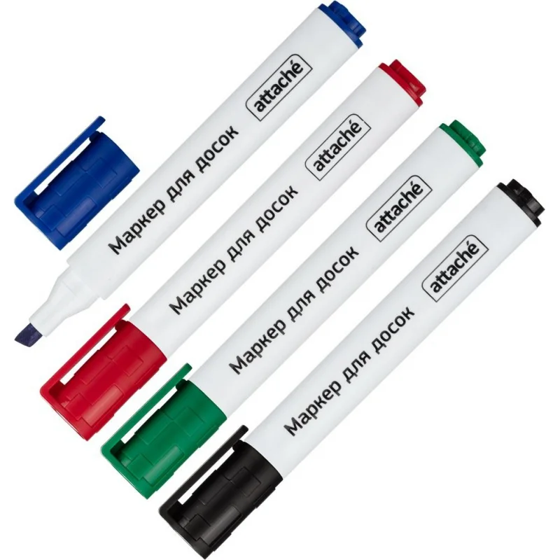 Маркер для досок Attache Accent набор 4 цвета, со скошенным након, 1-5мм