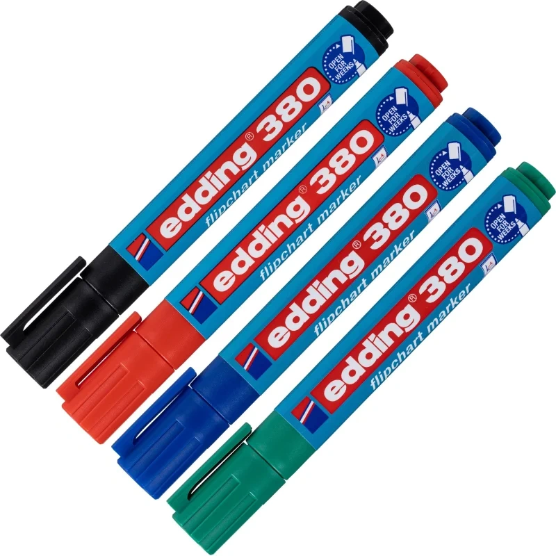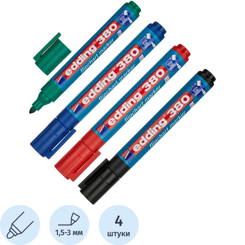 Маркер для флипчарта Edding 380 набор 4 цвета, 1.5-3мм, круглый наконечник, cap off