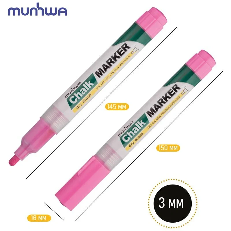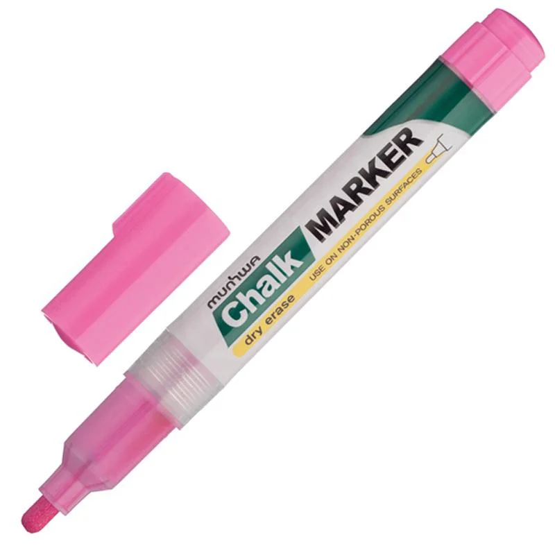 Маркер меловой Munhwa розовый, 3мм, круглый наконечник, сухостираемый