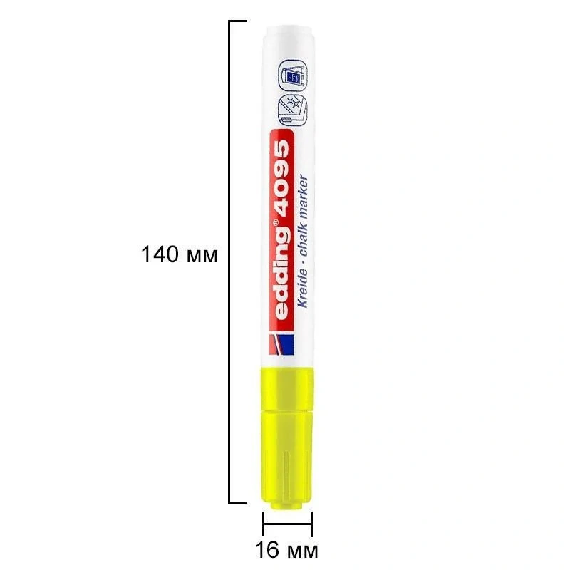 Маркер меловой Edding 4095 желтый, 2-3мм, круглый наконечник, для досок и любых гладких поверхностей