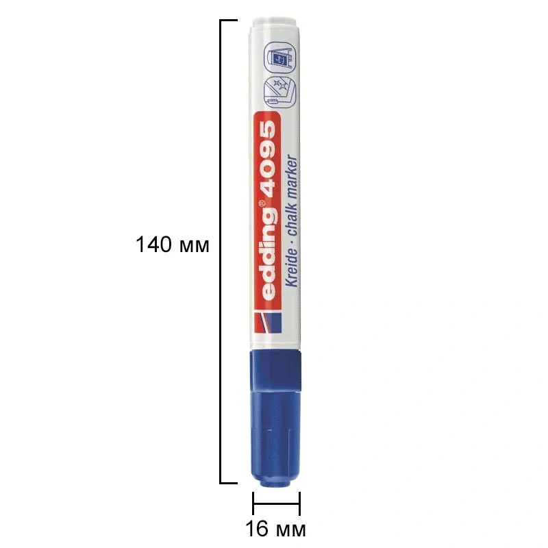 Маркер меловой Edding 4095 синий, 2-3мм, круглый наконечник, для досок и любых гладких поверхностей