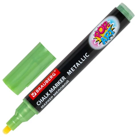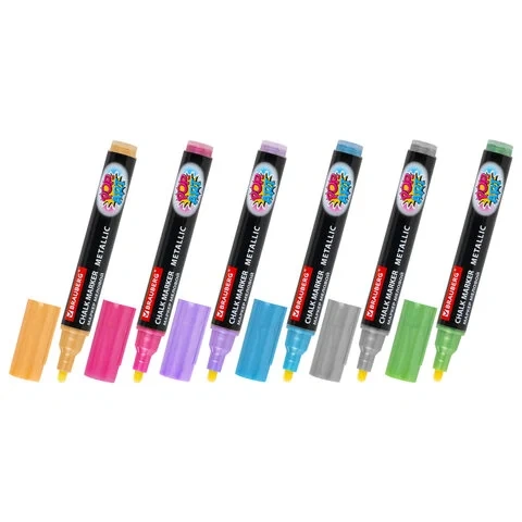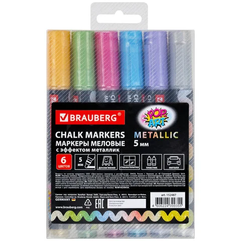 Маркер меловой Brauberg Pop-Art 6 цветов, металлик, 5мм, скошенный наконечник, влагостираемые
