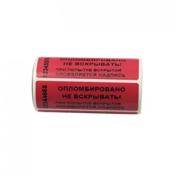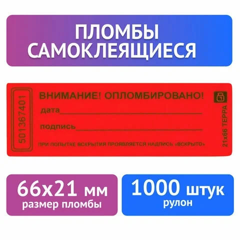 Пломба Терра самоклеющаяся номерная, красная, 66х22 мм, 1000шт, рулон