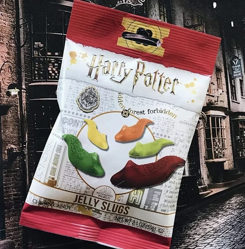 Это 5 фирменных вкусов в виде слизней:- сочная груша; - кислая вишня; - мандарин; - арбуз; - банан. Не содержат вредных жиров, масел, молочных продуктов, глютена, поэтому могут быть употреблены в пищу детьми и вегетарианцами! Абсолютно безопасны и анти-аллергенны. Эти конфеты были созданы для самых преданных поклонников эпопеи о Гарри Поттере. Слизняки из мармелада придутся по вкусу как опытным волшебникам, так и тем, кто только начинает осваивать азы магического искусства. Наверняка все помнят момент, когда приятель Гарри Поттера - Рон при помощи магического заклинания пытается вызвать слизней и угостить ими Драко Малфоя, однако все выходит совершенно иначе, и из-за сломавшейся волшебной палочки мерзких моллюсков приходится есть ему самому. Яркие конфетки Harry Potter Jelly Slugs с сочными фруктовыми вкусами спелой вишни, ароматной груши, сладкого банана, солнечного мандарина и сочной дыни позволят каждому ненадолго оказаться в волшебной сказке! Однако, попробовать их решится наверняка не всякий – ведь они созданы в виде тех самых скользких слизней. Удивительное сочетание неприятного внешнего вида с потрясающим вкусов этого жевательного мармелада доставит немало удовольствия как взрослым, так и детям. Сладкие слизни не имеют в своем составе глютена, вредных масел и жиров, и их могут есть дети, а также вегетарианцы. Harry Potter Jelly Slugs можно жевать в одиночку, в веселой компании друзей, а также этот оригинальный десерт вполне может стать необычным запоминающимся подарком.